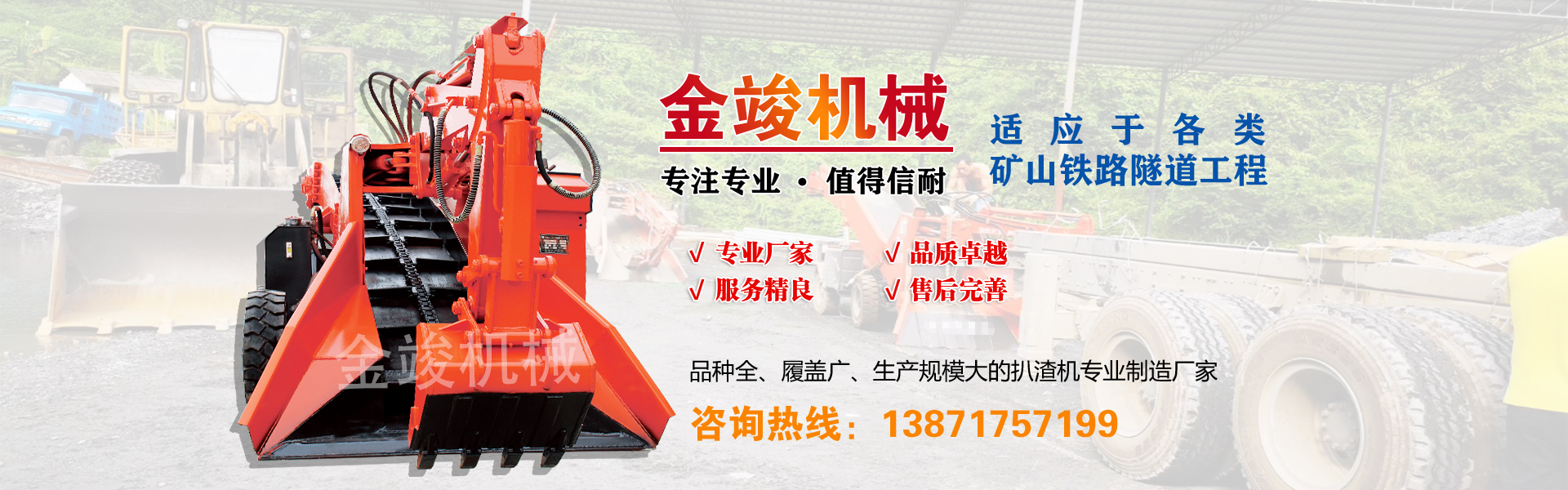 我公司是生产矿用扒渣机的专业厂家,生产各种矿用扒渣机、小型扒渣机、引水洞扒渣机、巷道扒渣机、隧道扒渣机、煤矿用防爆扒渣机、扒渣机配件、铣挖机,矿用出渣车、矿用三轮车/四轮车,轨道侧卸式矿车,空压机,矿用机械配件等。我公司拥有雄厚的科研实力,针对顾客及市场需求,定向技术开发,拥有扒渣机产品五大系列50多种型号。可用于生产作业空间为1.8m*1.8m以上含1.8m*1.8m的各种矿洞的采集掘进,从平巷采集掘进到25°以内斜井的采集掘进都有相匹配的产品。公司还可根据客户的具体要求,订做与之相匹配的设备.......