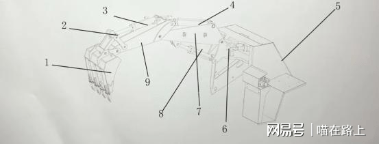 矿用挖掘式装载机(扒渣机)的挖掘装载分为9个部分组成,主要有挖斗、挖斗连接板、小臂油缸、大臂油缸、龙门、牛头回转座、大臂、支撑油缸和小臂9个部分。挖掘装载部分主要包括回转架、回转体、大臂、小臂、铲斗、大臂油缸、铲斗油缸、回转油缸等。挖掘系统采用反铲结构,通过回转轴与回转架、回转体联接,操控液压系统可控制大臂油缸、小臂油缸、铲斗油缸、回转油缸动作,并带动大臂、小臂、挖斗、回转体协调工作,实现挖掘、采集、装料功能,从而完成矿石、渣料的收集。基本和挖掘机原理一样。